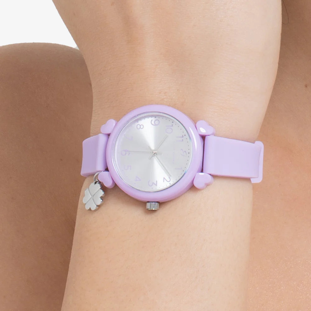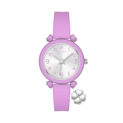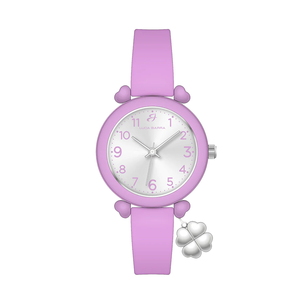Orologio Luca Barra Ragazza Donna Cinturino Silicone Lilla Ciondolo Quadrifoglio _