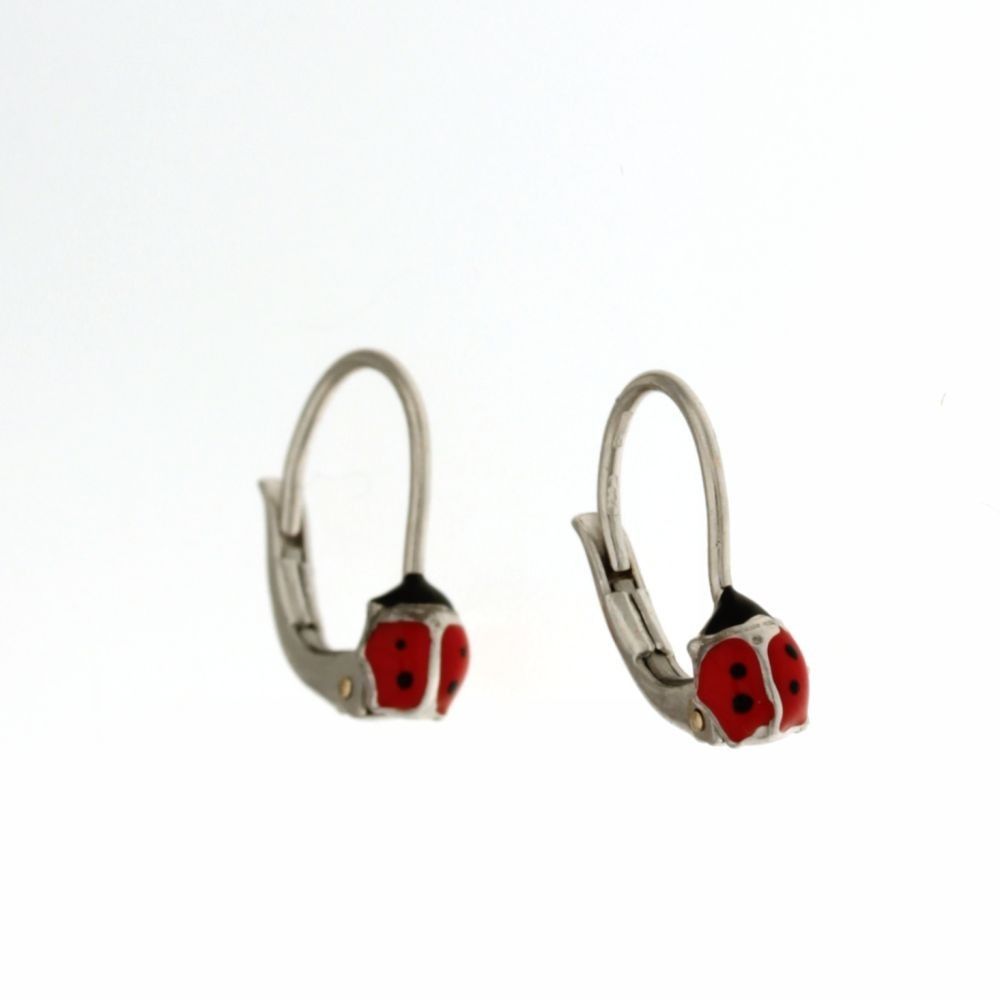 Gli orecchini sono realizzati in oro 18 kt, soggetto coccinella smaltata con chiusura a monachella.